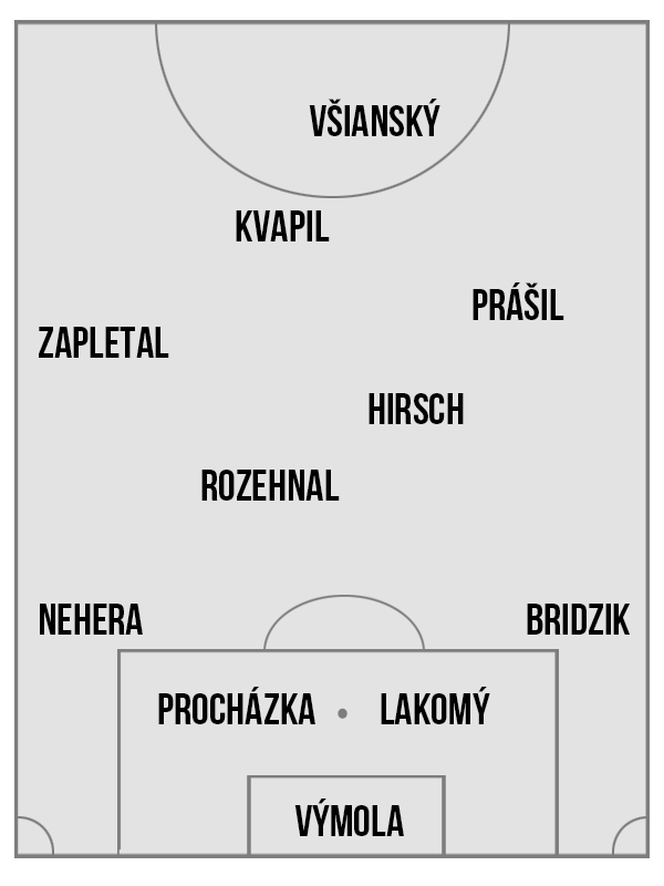 „Do zápasu jsme vstoupili aktivně a hned v 7. minutě Hirsch z přímého kopu vstřelil branku. Poté jsme sice měli územní převahu, ale naše hra byla plná nepřesností. V závěru poločasu po úniku Hirsche vstřelil branku Všianský.
